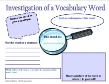 Every content area contains vocabulary that students must know, understand and apply. Make that process fun and exciting with Investigation of a Vocabulary Word. Students dig deep to explain and apply the word they are investigating.