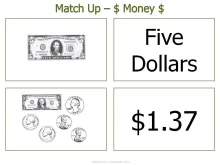 Students identify and count various denominations of money (up to $5 bill) to find the correct match up card. Students can work independently or in groups. Teachers can differentiate the activity by having students add and subtract sums as they are matched! This instructional resource is a must-have for every math classroom!